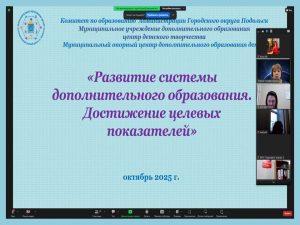 21 октября 2025 года состоялся муниципальный вебинар на тему «Развитие системы дополнительного образования. Достижение целевых показателей» в дистанционном формате. Организатором мероприятия выступил Муниципальный опорный центр дополнительного образования детей. Цель мероприятия: информирование специалистов образовательных организаций, ответственных за работу по реализации дополнительных общеобразовательных общеразвивающих программ, об основных аспектах в рамках достижения целевых показателей в системе дополнительного образования. …