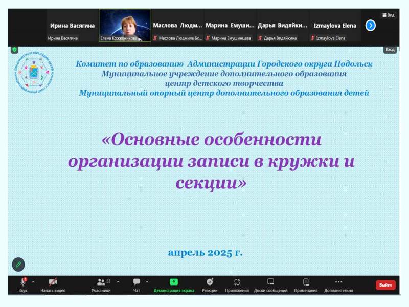 14 апреля 2025 года муниципальным опорным центром дополнительного образования детей Г.о. Подольск был проведён муниципальный вебинар «Организация современного занятия в системе дополнительного образования».