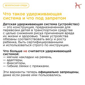 С 26 июля 2025 года в России вступили в силу обновлённые правила перевозки детей в автомобилях. Теперь использовать для фиксации ребёнка разрешается исключительно сертифицированные детские удерживающие системы (устройства). Такие распространённые устройства, как адаптеры, ремешки, накладки и прочие несертифицированные удерживающие элементы, с этого момента утрачивают статус допустимых и считаются нарушением ПДД.