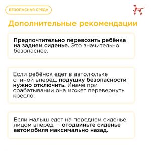 В карточках кратко рассказали о главных требованиях. Обязательно расскажите о новых правилах родственникам и тем, кто перевозит ваших детей.